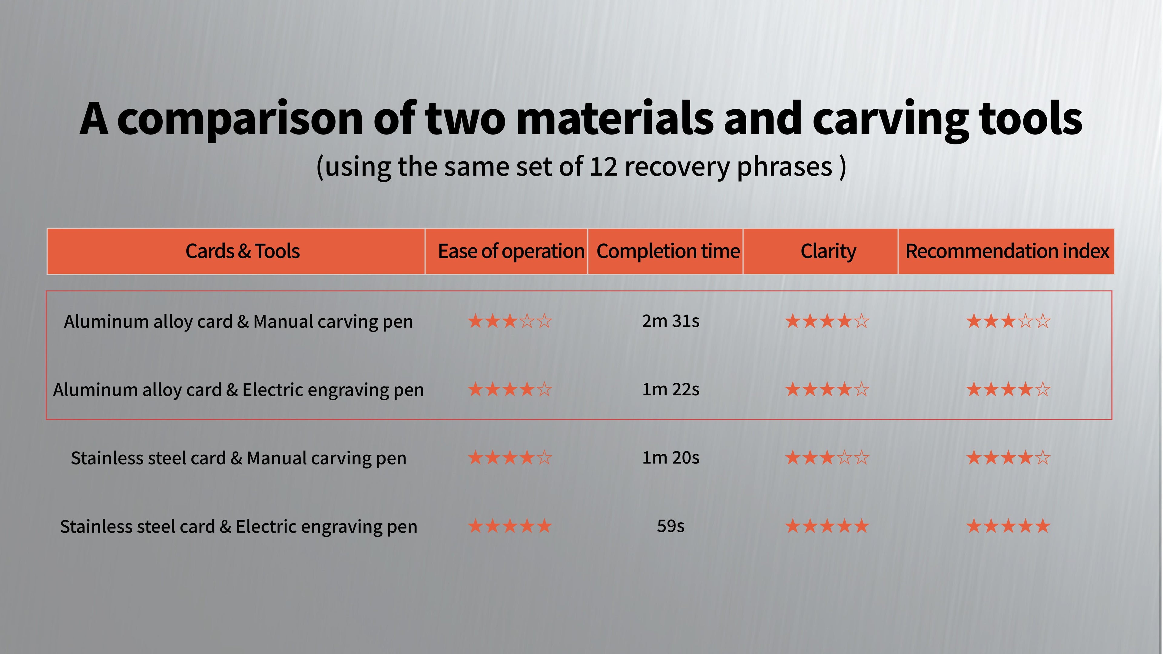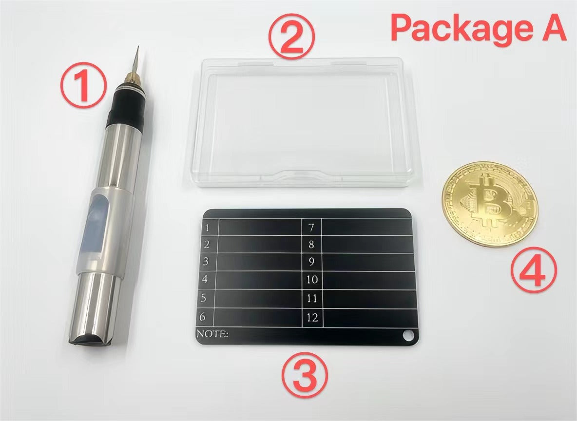 Crypto wallet recovery phrase storage kit aluminum alloy card record device package